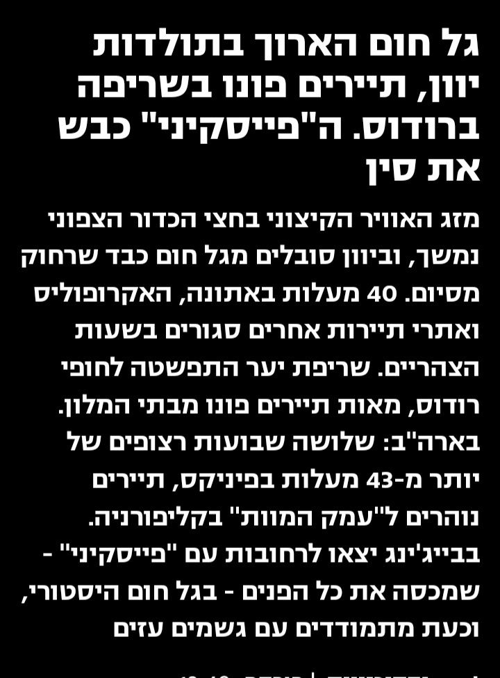 - השריפה באי רודוס ביומה החמישי והיא דוהרת דרומה חנוך א