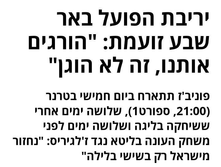 בליטא כל כך מזלזלים בהפועל באר שבע שהם שולחים נגדה את נבחרת הכדורגל של ישיבת פוניבז'