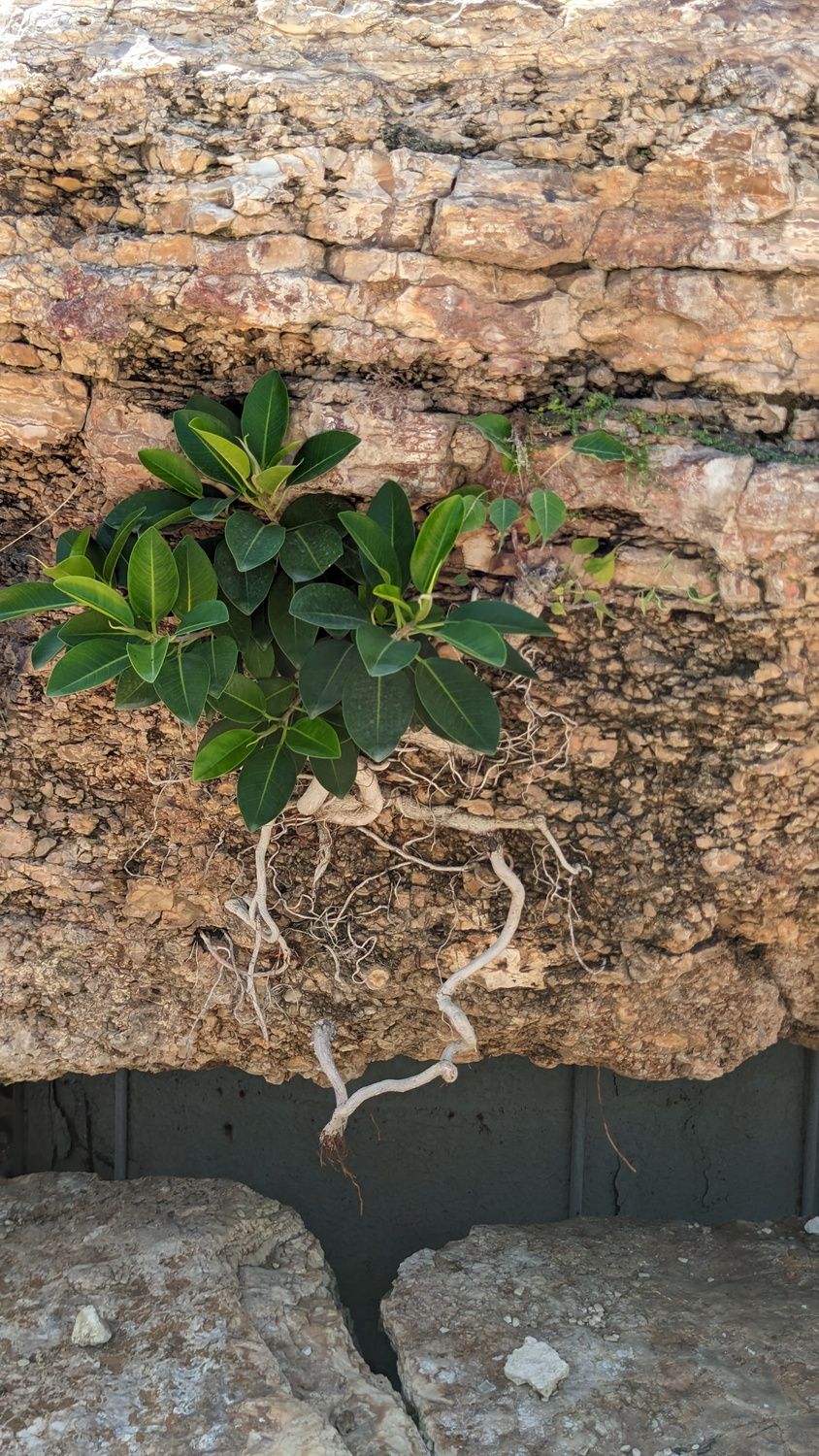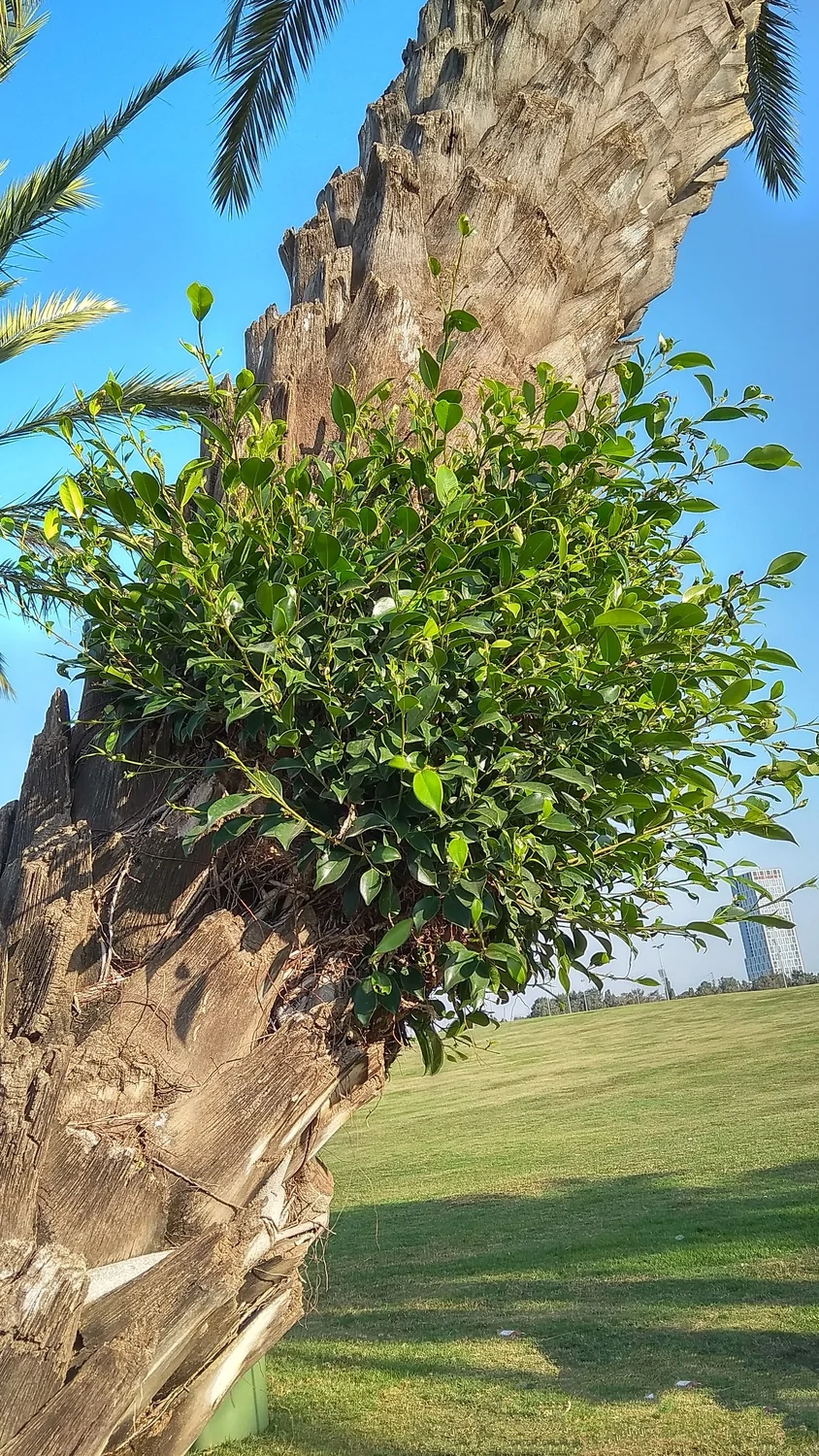 תמונה שיתפתי כאן בתחילת החורף משורש המגיע מעץ פיקוס המרוחק כ- 15 מ' מעץ הדקל ונכרך על הדקל בצורה המזכירה נחש פיתון שלופת את עצמו על קרבנו. כמובן שהלפיתה מסתיימת בעץ פיקוס חדש הגדל על עץ הדקל.