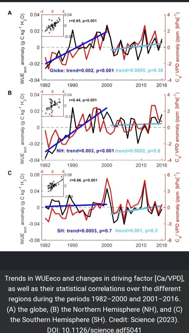 הצמח זקוק לכלורופיל, אנרגית שמש, פחמן דו חמצני ומים. התוצרים של התגובה הם סוכר וחמצן. בעיקרון, אם יש יותר פחמן דו חמצני באוויר ניתן לייצר יותר סוכר וחמצן, או לגדל צמחים מהר יותר ולגודל גדול יותר. בפועל ראו שבמשך תקופה מסוימת הצמחים אכן גדלו מהר יותר כי היה יותר פחמן דו חמצני, אבל בשנים האחרונות, על אף המשך הגידול בכמות הפחמן הדו חמצני באוויר, קצב גידול הצמחים נעצר ולא המשיך לגדול, מסיבה לא ידועה