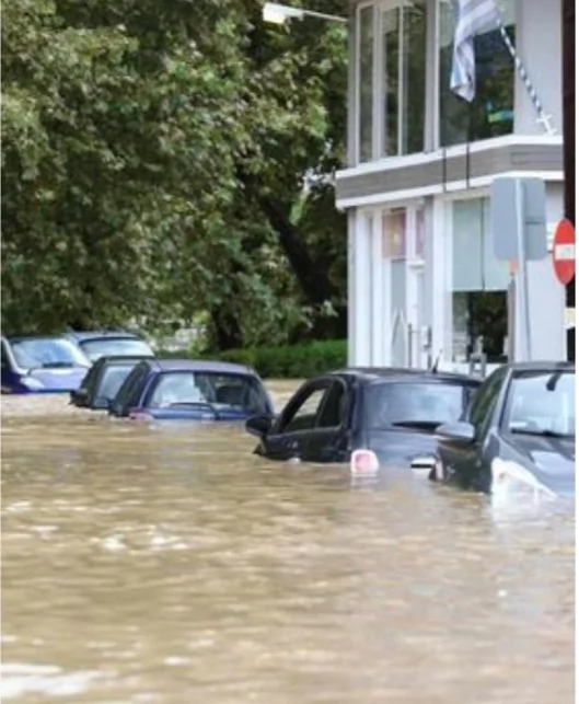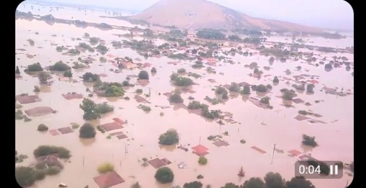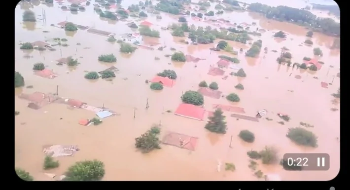 הפך לאגם אחד ענקי שבו רק גגות הבתים בולטים מעל למים