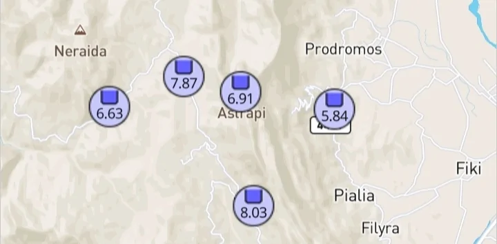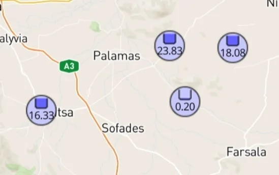- Trikala בעמק חטפה 690 ממ כאשר השנתי הממוצע הוא 645 ממ חנוך א