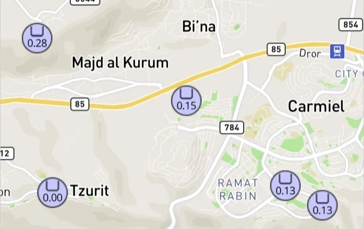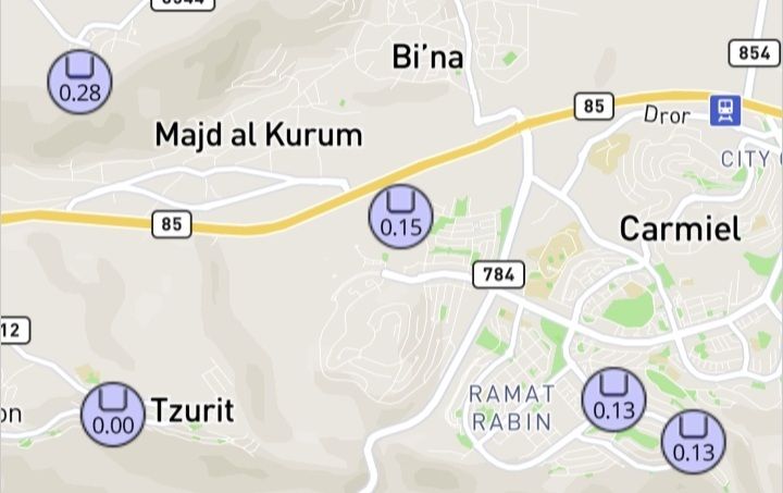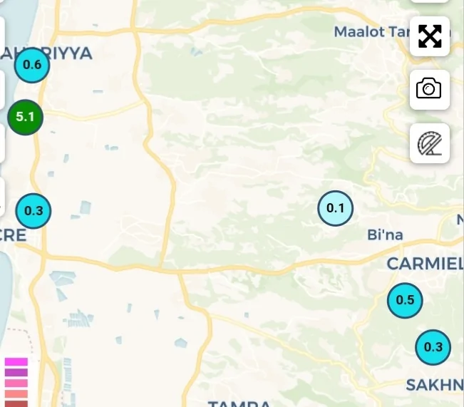 תובל - 2.8 ממ, כרמיאל - בסביבות 1.4 ממ