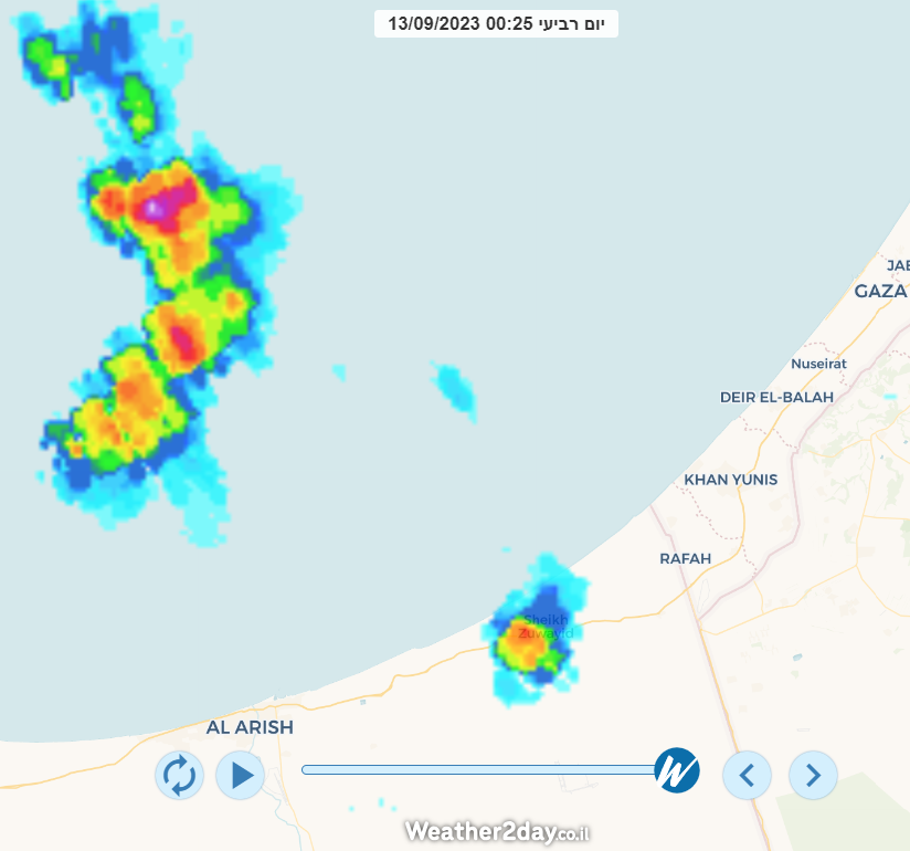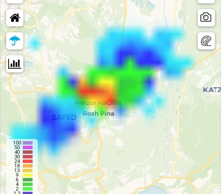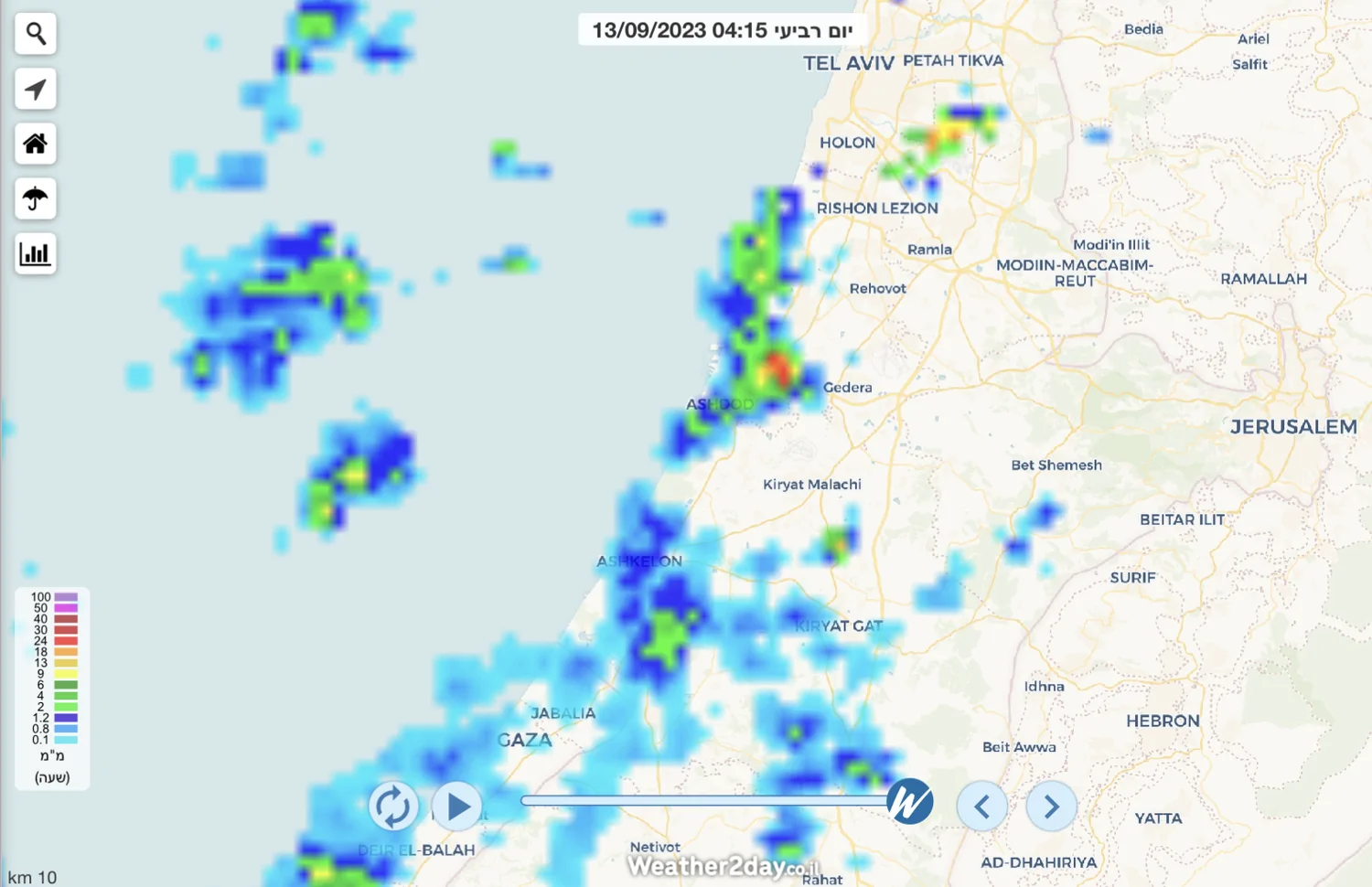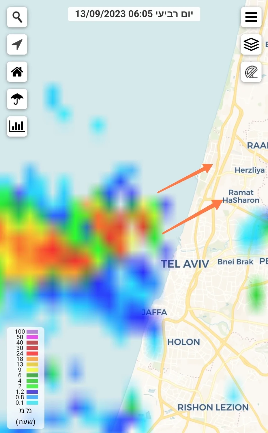 - עוצמות של 200 ממ"ש כ-75 ק"מ מחופינו Weather2day