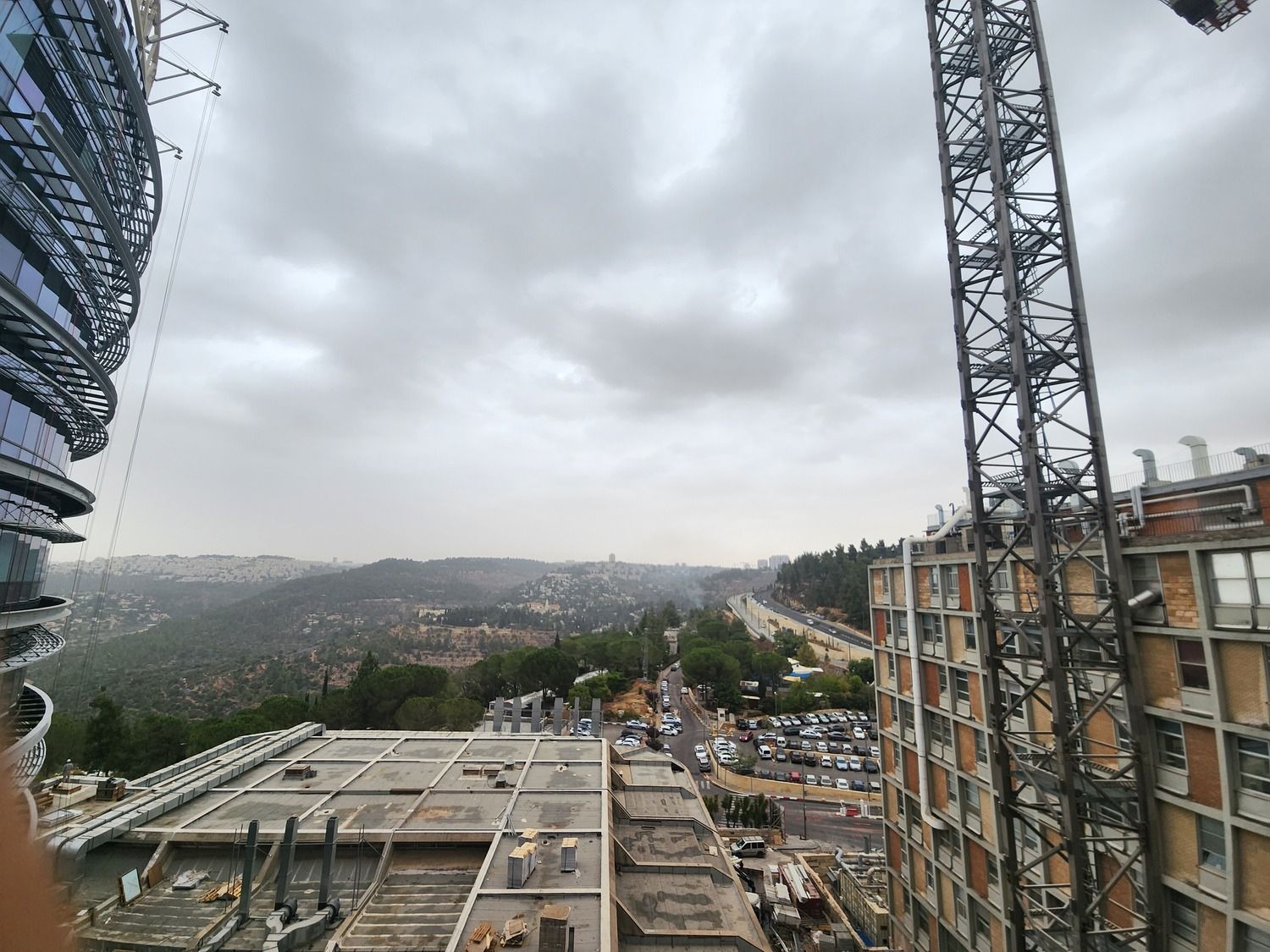מבט כעת מקומה 7 בבניין הישן בהדסה עין כרם לעבר הנוף המעונן: