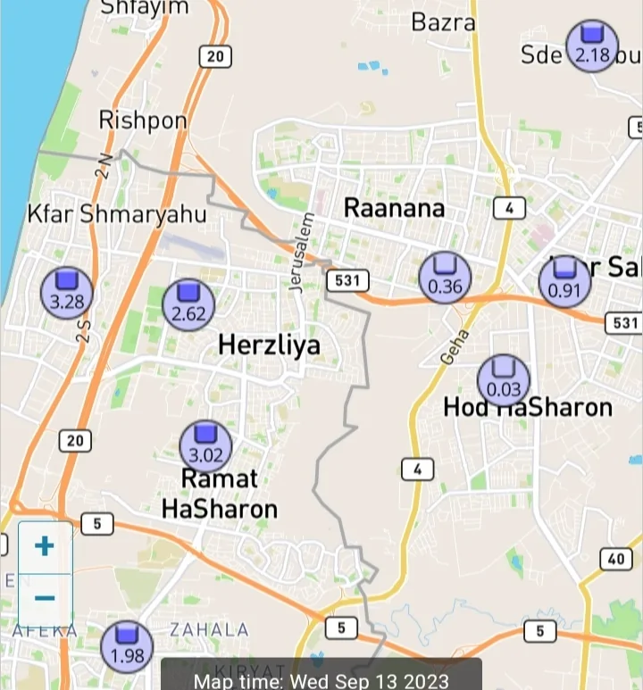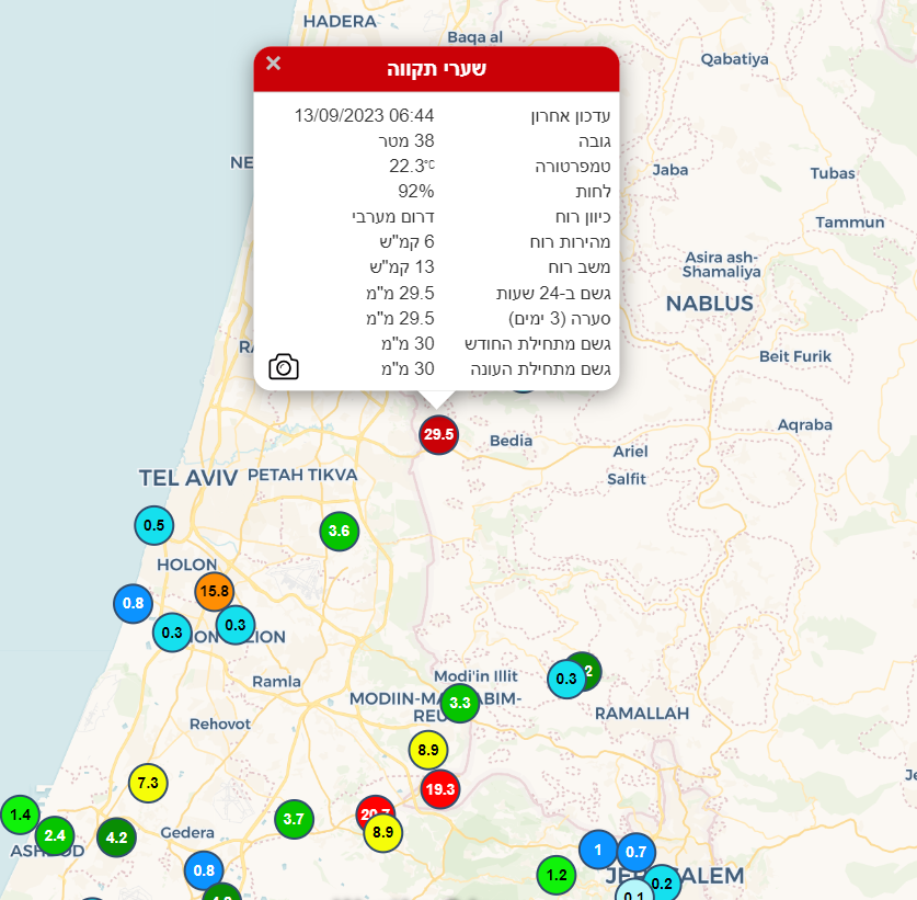 הן תחנת הכפר הירוק עם 36.2 מ"מ ושדה התעופה הרצליה עם 34.3 מ"מ.