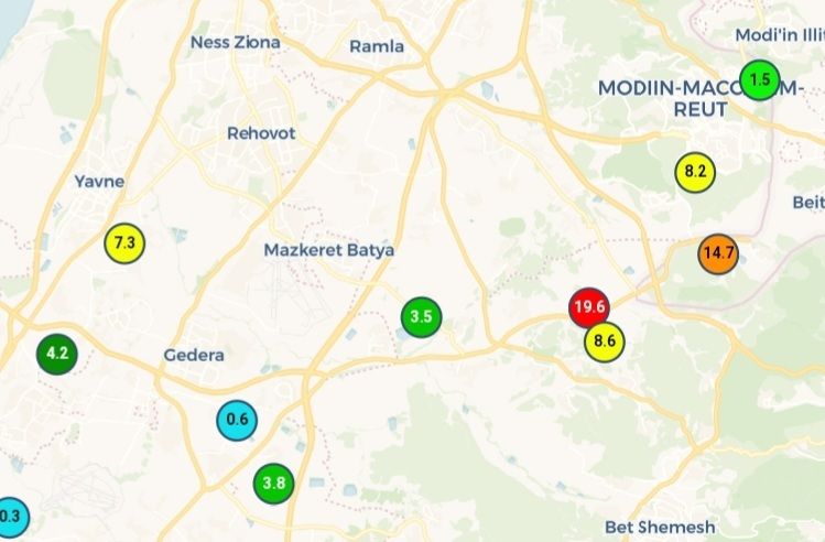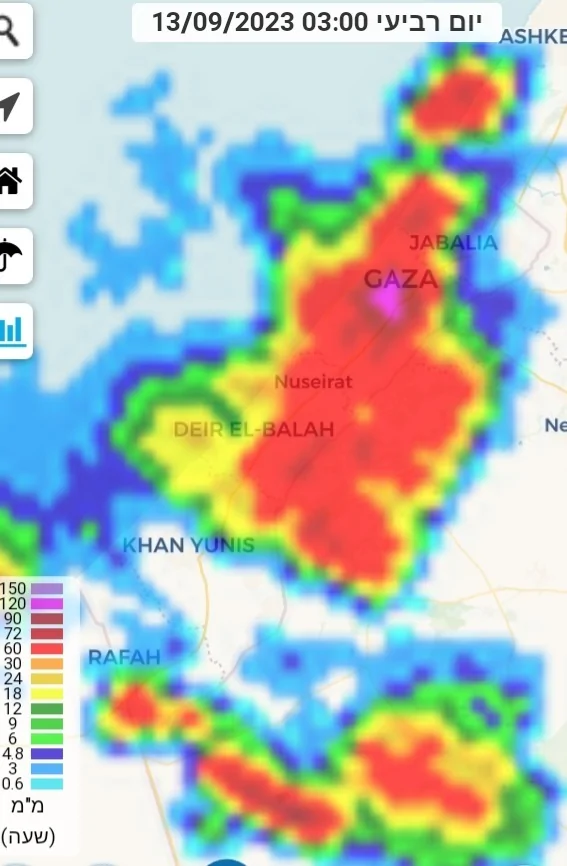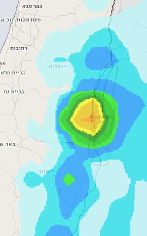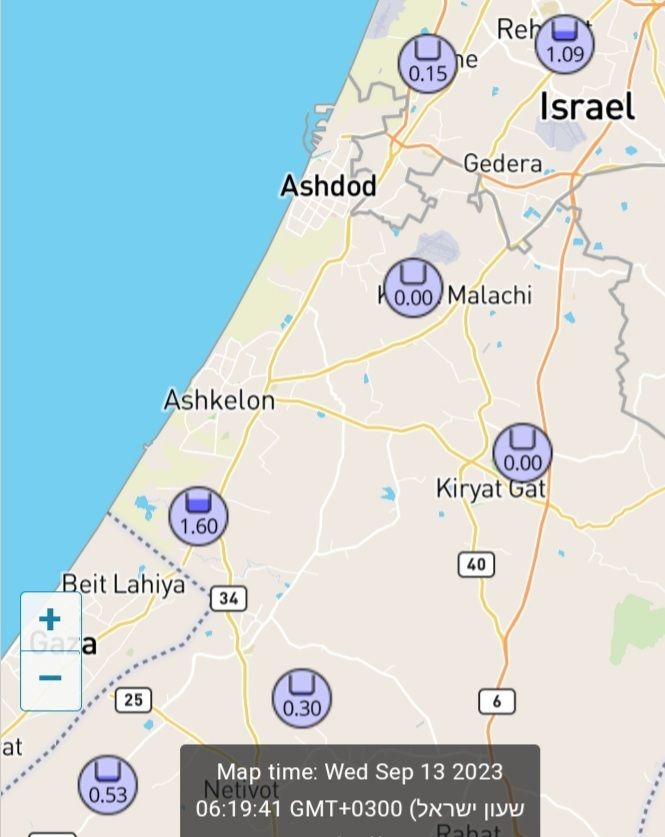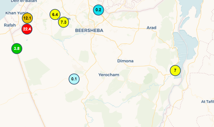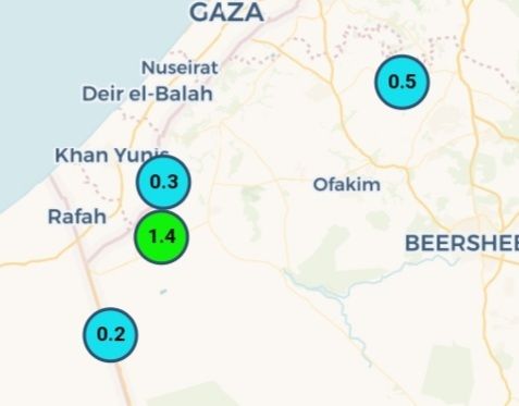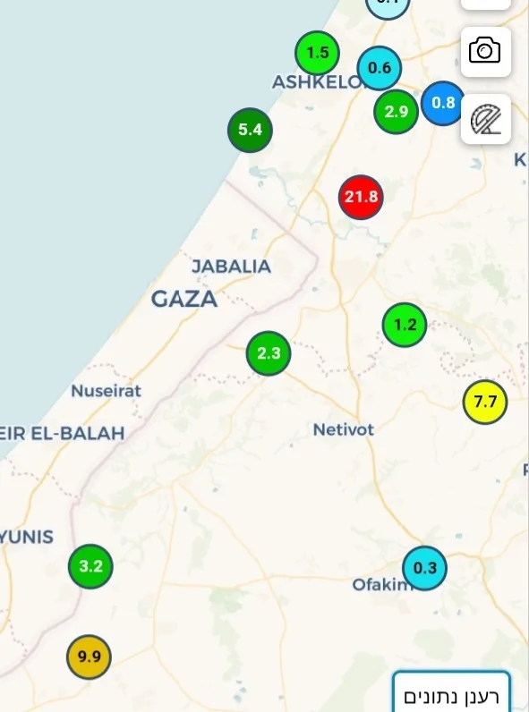 הוא מעריך 5 ממ באזור צפון הרצועה/אשקלון