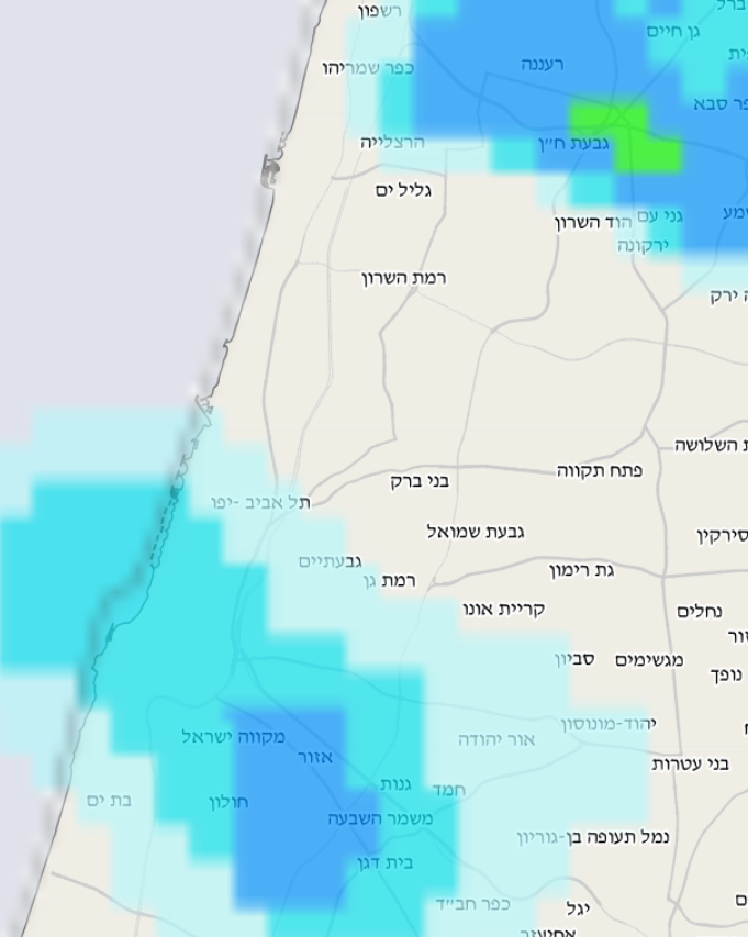 15 מ"מ בחולון עם גשם שלא פסק עד לפני רבע שעה.