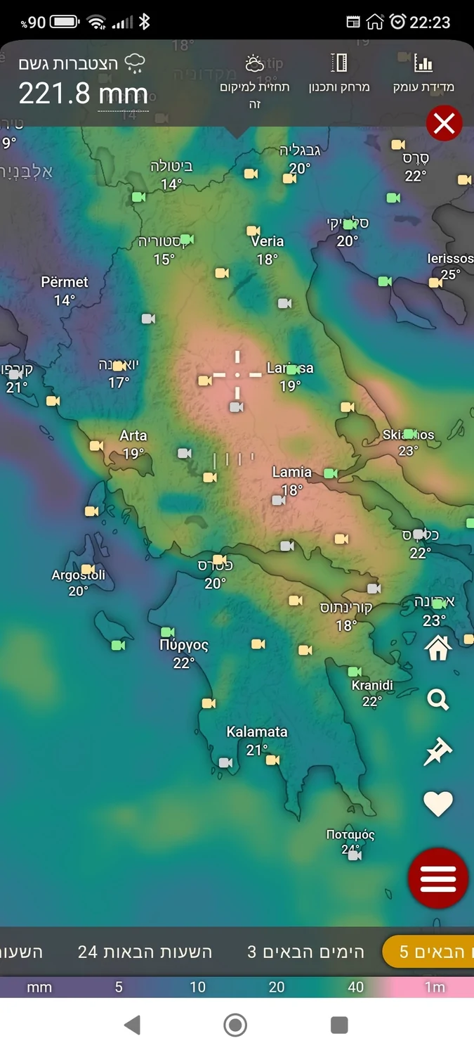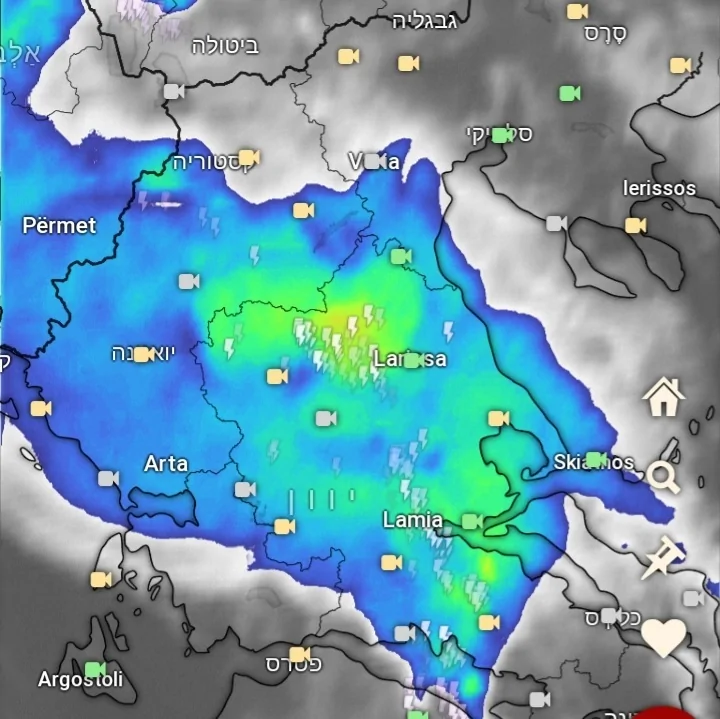 - כרגע בדרום Pelion קצב גשם 20 ממ/ שעה (43dbz) חנוך א