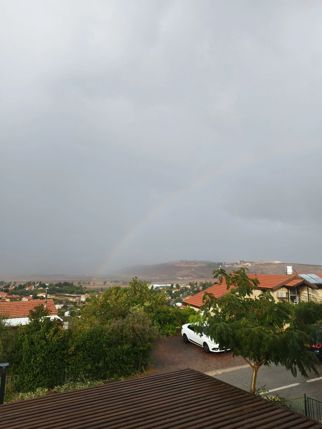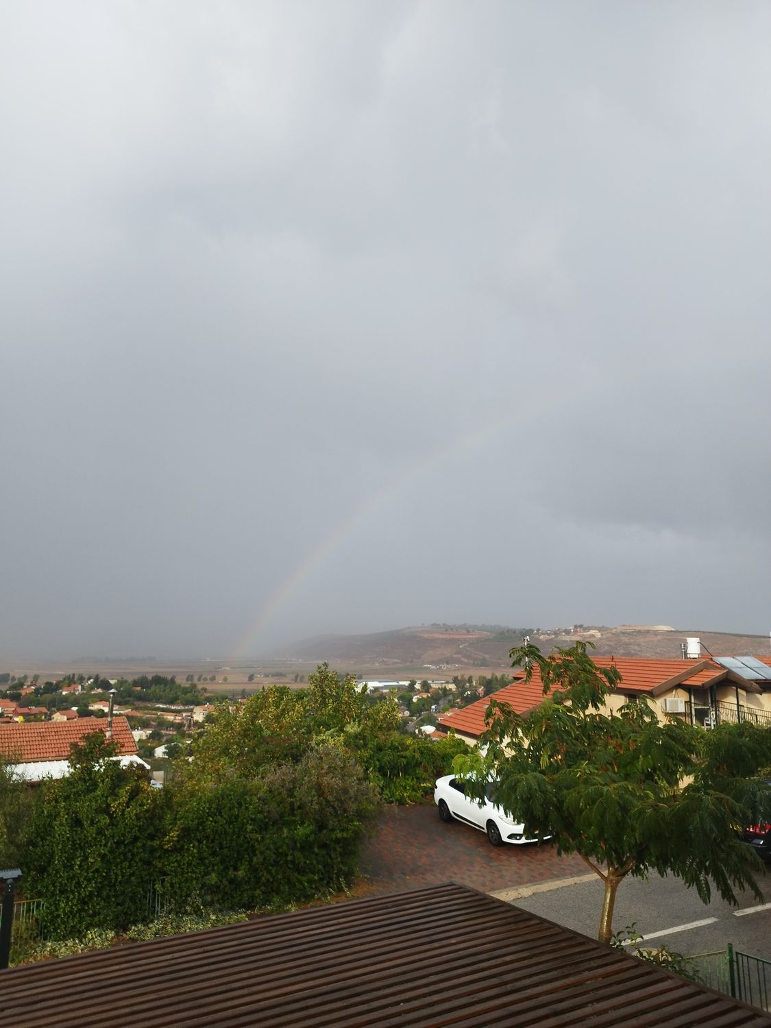 - ירד גשם חזק למשך חמש דקות עכשיו נגמר בתמונה קשת קשה לראות אבל יש איתן