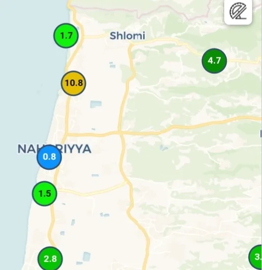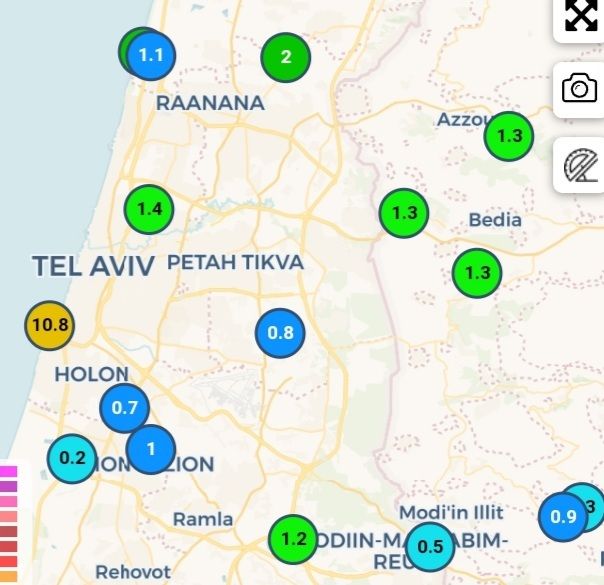 כולל מטולה נהריה כפר סבא רעננה דרום תל אביב והדרום ברובו ולשאר כמו נתניה חדרה הרבה פחות ומ אתמול הפוגה מגעילה