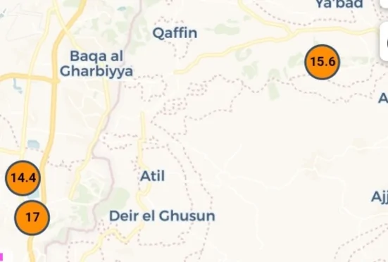 - כוכב יאיר - 4.6 ממ, אזור ירושלים -1.3 ממ חנוך א
