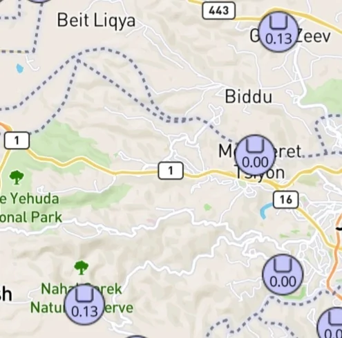 לפי המכם ענני גשם באיזור גבעת זאב ובאיזור בית שמש, ביתר, בואכה ירושלים.