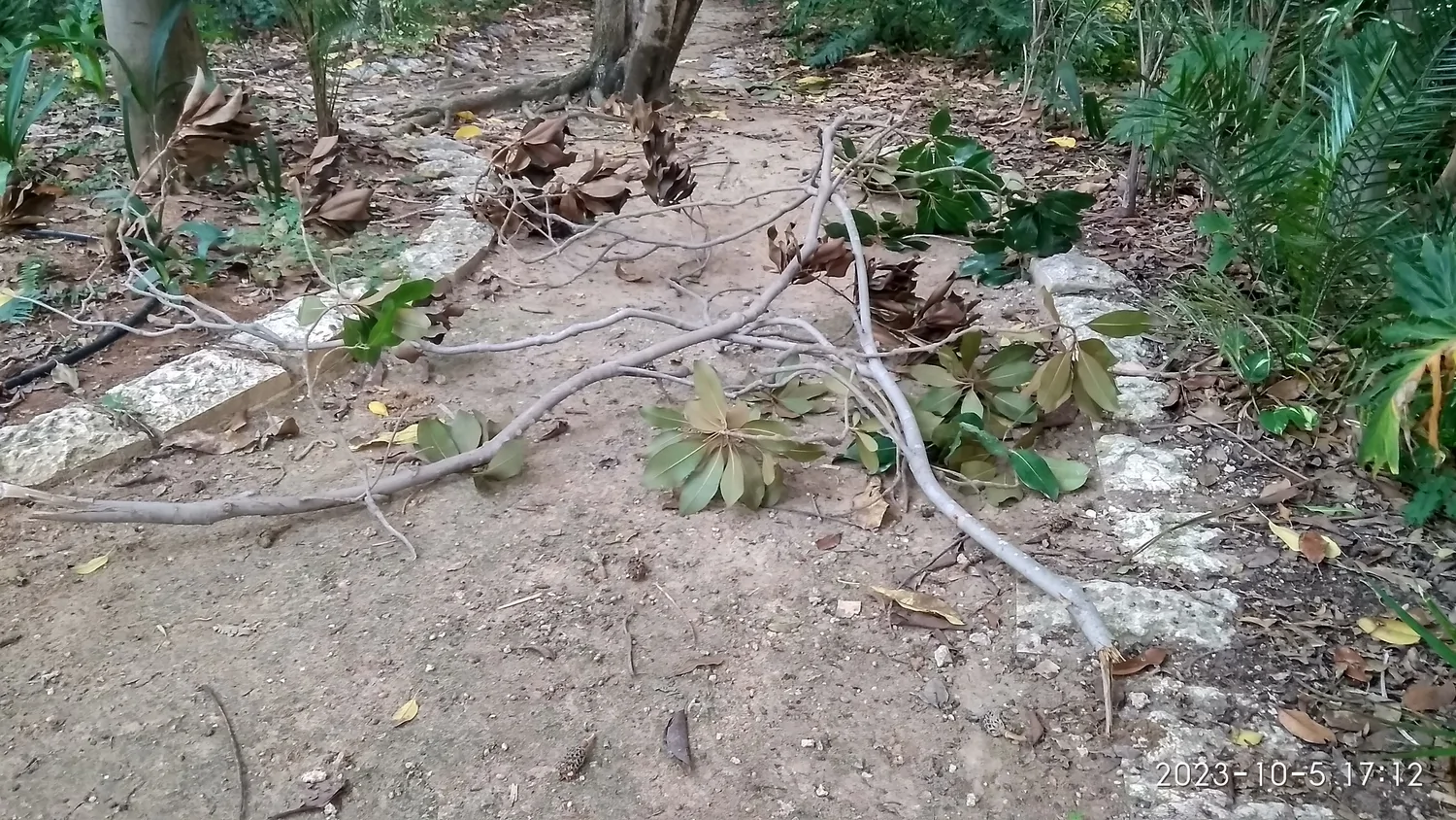 בתמונות- ענפים שנפלו אתמול על השבילים ובסמוך להם כתוצאה מהרוח.
