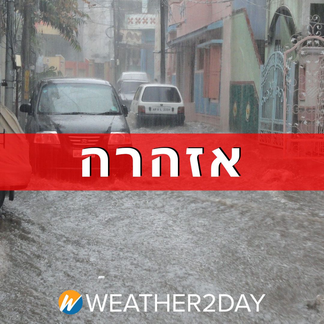 התראה מוקדמת על שיטפונות בזק במדבר יהודה וים המלח, בצפון מזרח הנגב, במזרח הנגב ובצפון הערבה ב-14/11 מ-06 עד 22.