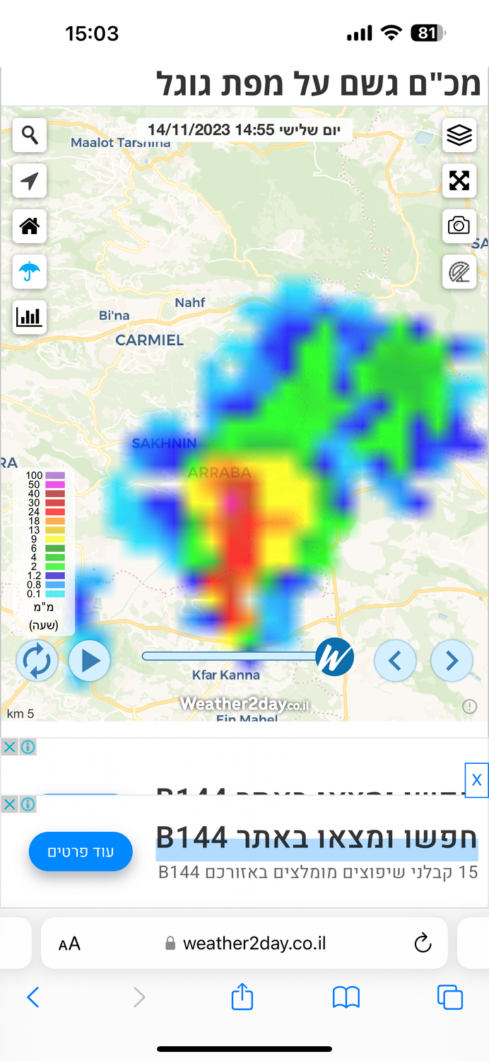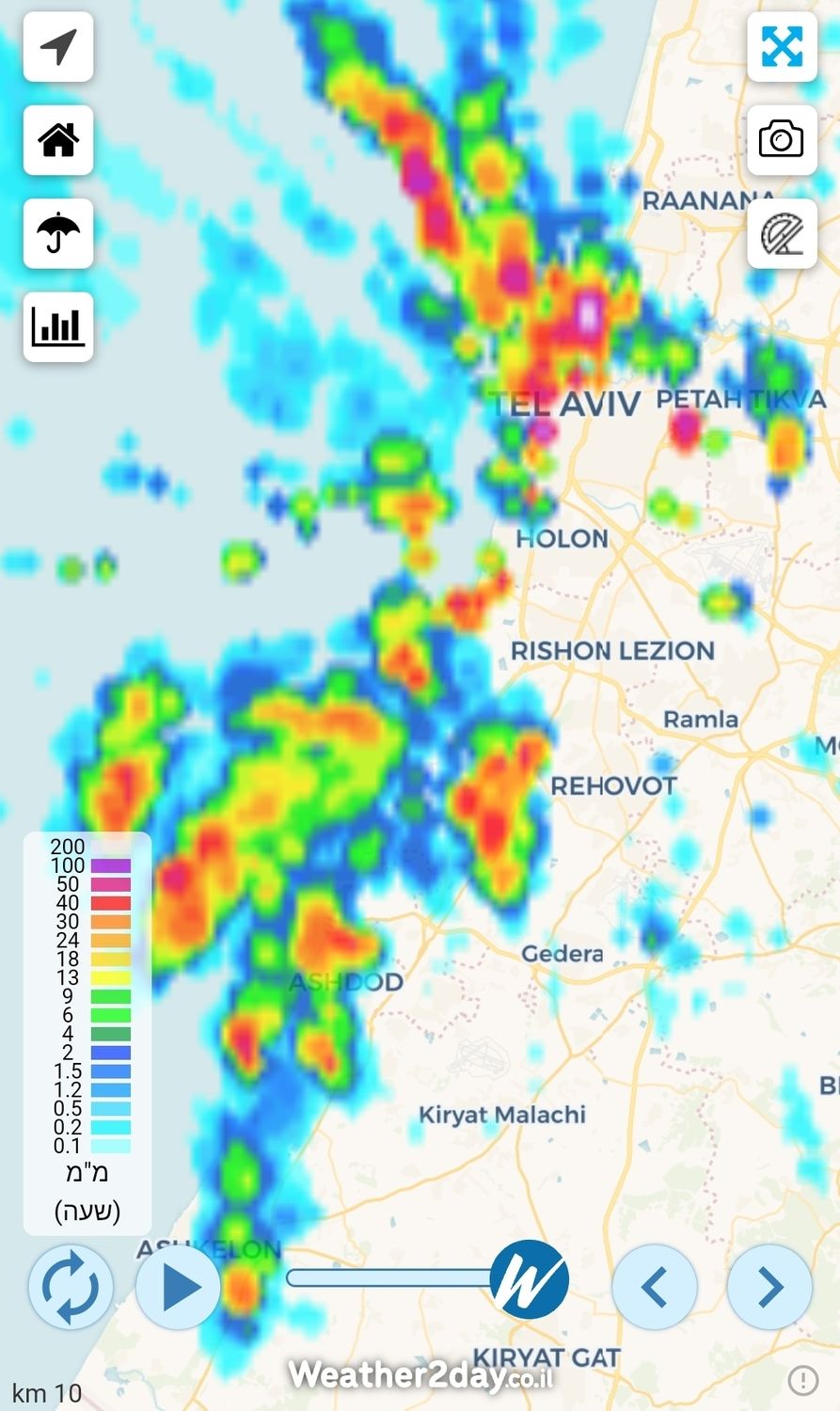 - מתוך תצוגת מכ"ם הגשם המשודרגת Weather2day