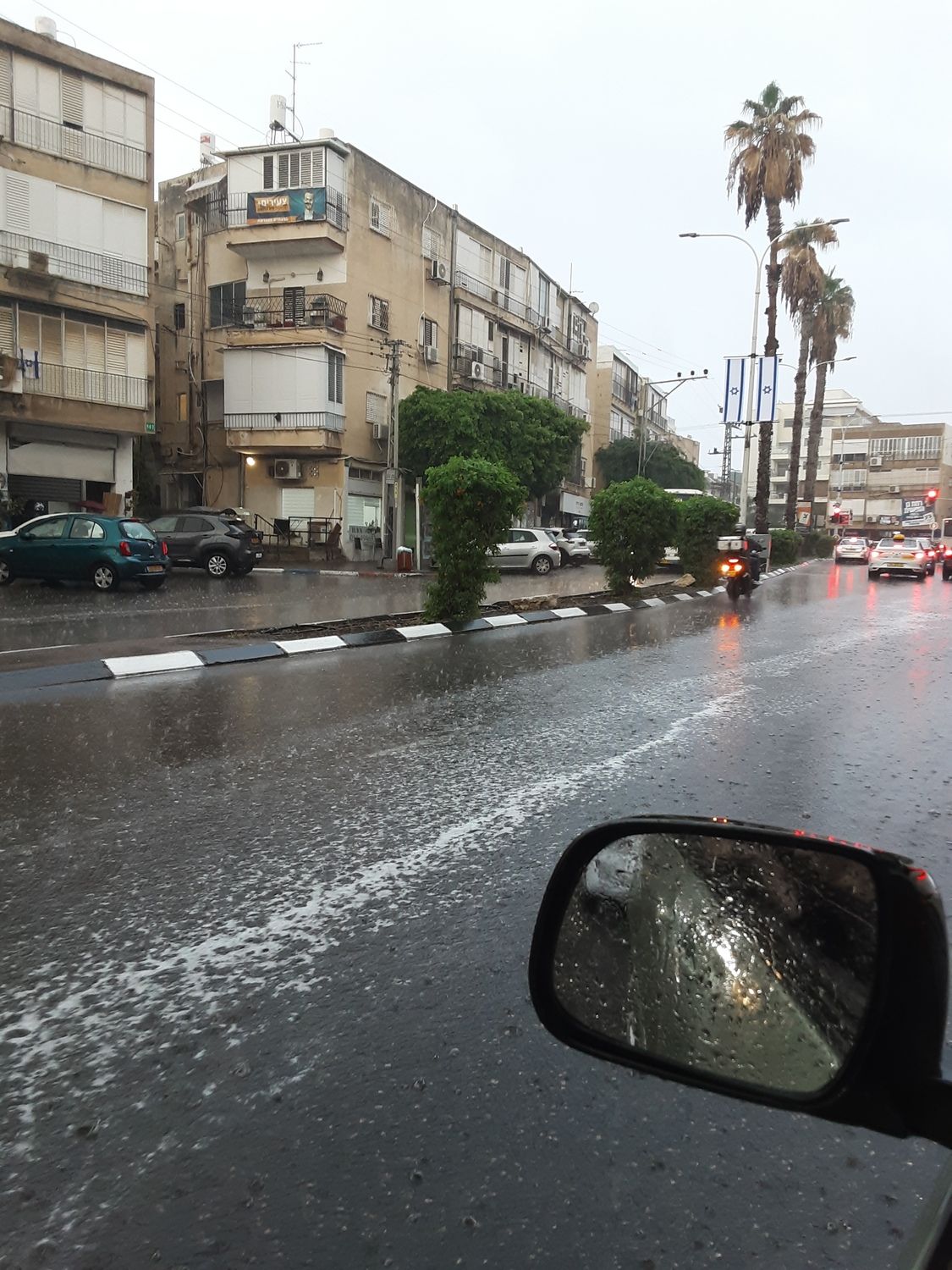 - אחרי כמה דקות גשם רגיל שהרטיב גשם חזק אופיר נתניה
