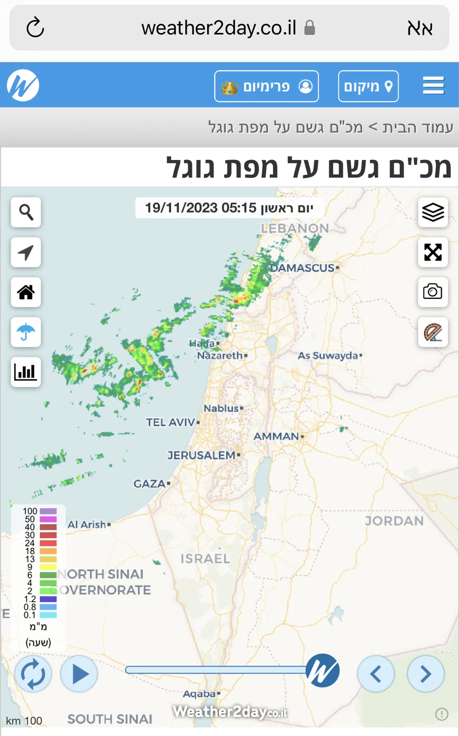 עקבתי אחר כמות הגשם שעומדת להגיע