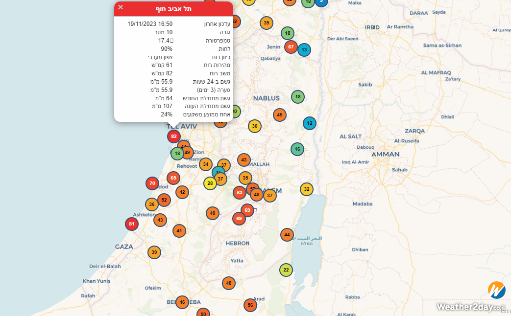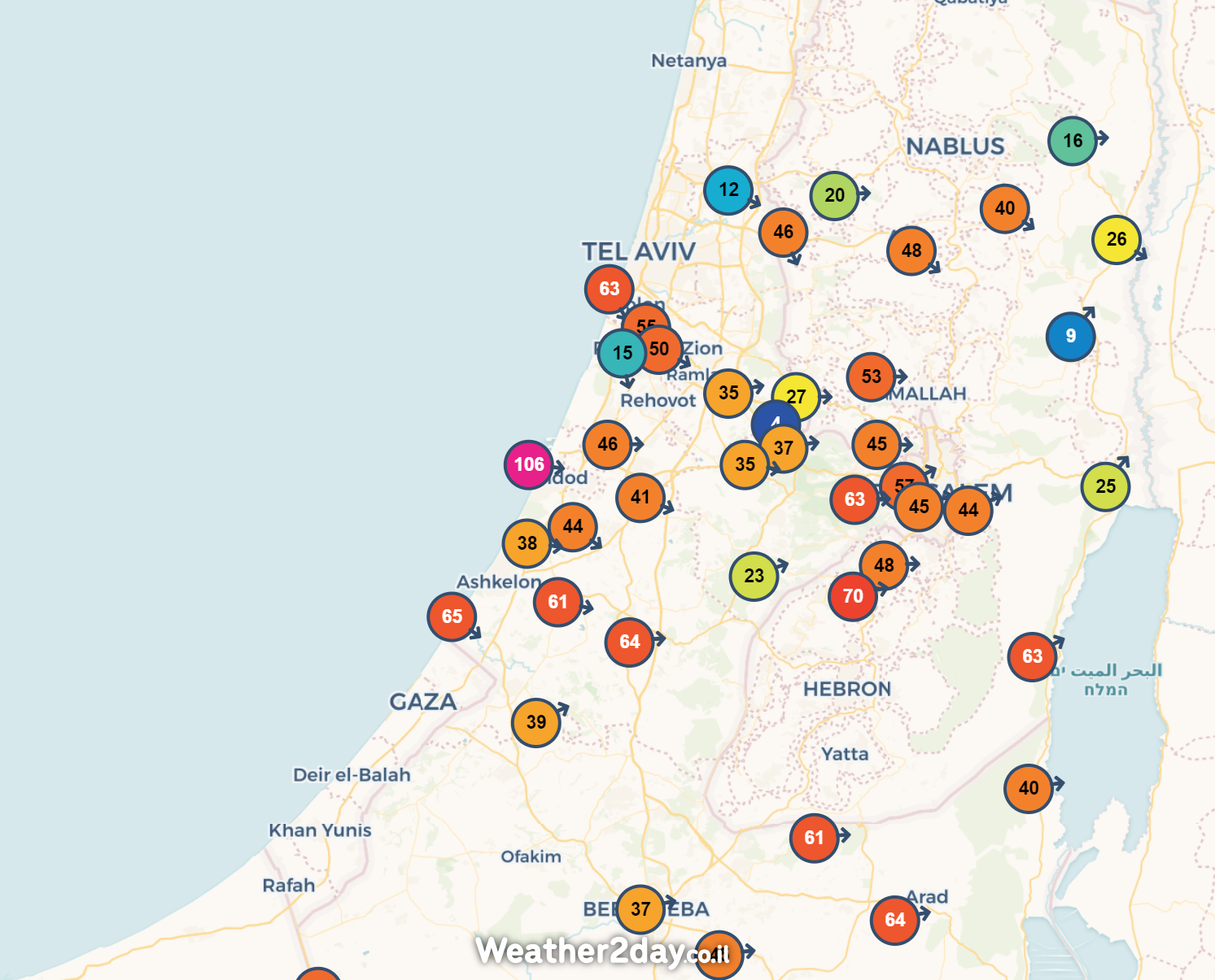 - השיא להיום בתל אביב: 93.2 קמ"ש Weather2day