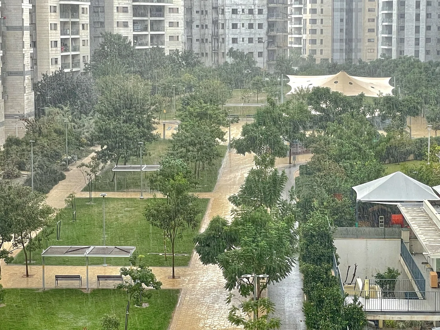 עכשיו המבול התחלש קצת אבל לפני 10 דקות הוא היה ממש חזק.