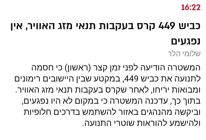 - כביש 449 מצומת רימונים ליריחו נחסם עקב סחיפה חנוך א