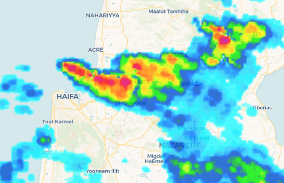 במכ"ם הופיע סגול מעל כרמיאל, אך זה היה אירוע קצר.