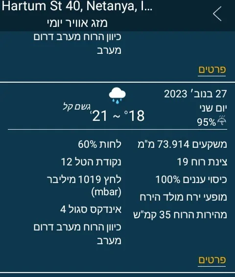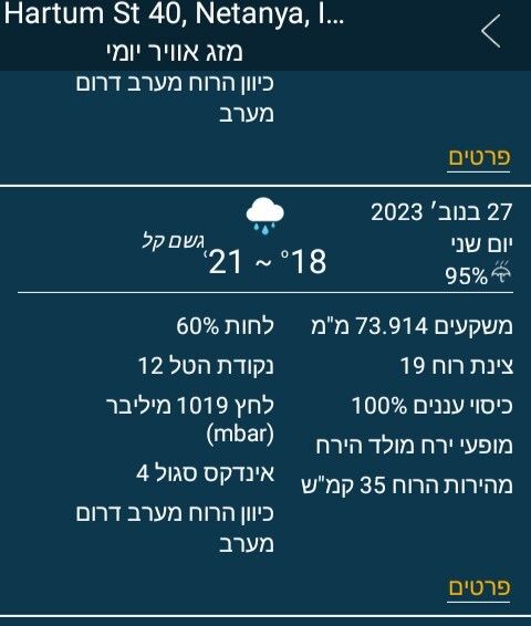 - דיווחי מזג אוויר - יום שלישי 21/11/2023 אורי