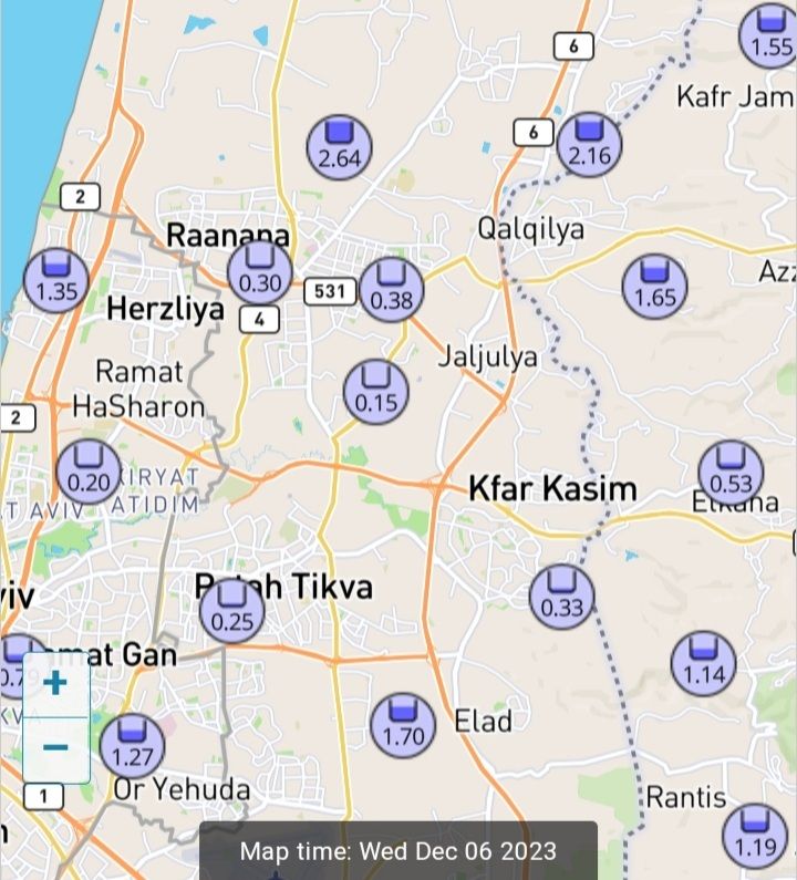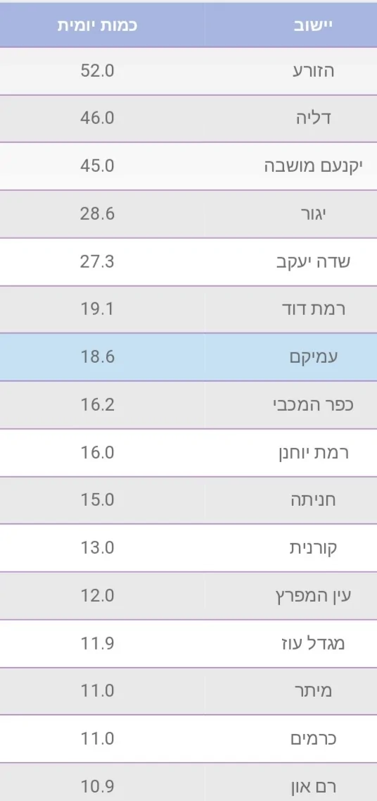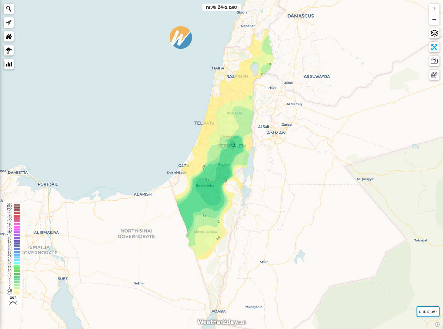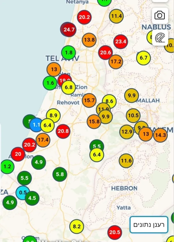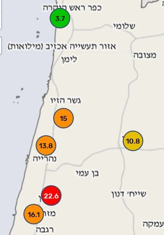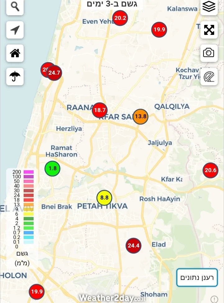 - הרצליה צפון עם 27.8 מ"מ ליממה שהסתיימה ב-8:00 יובל