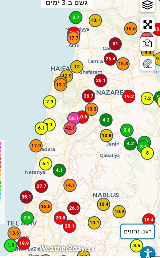 - גשמים אשדות יעקוב (מסתמך על מקומיים) איתן