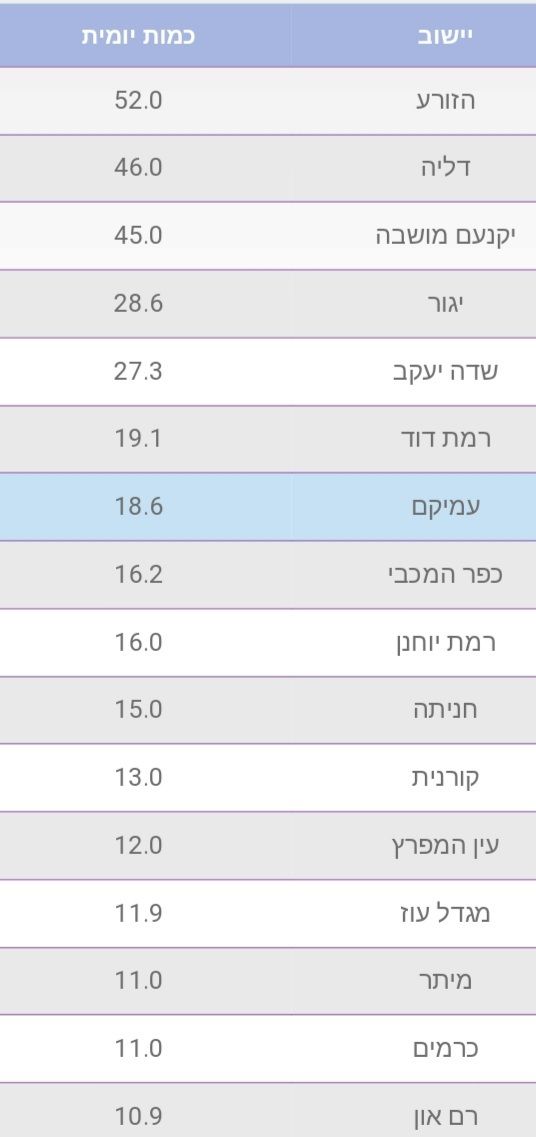 - הרדוף - 1.4 מ"מ ליממה. 16.2 מ"מ למערכת. 142.4 מ"מ לעונה. ארנון דובדבני