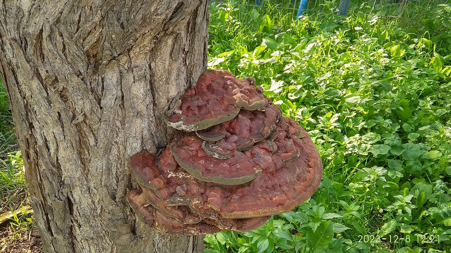 על עץ הגודל בסמוך למקום הפטריות גדלה פטריה ענקית. (''בהוקית'' בשמה המדעי- שם משפחה כולל לפטריות הגדלות על עצים. לגבי המין הספציפי של הפטריה שבתמונה- נא לפנות למומחים בתחום).