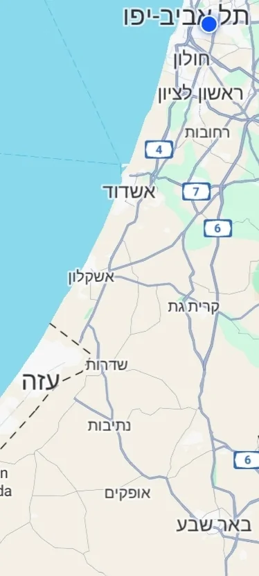 - שים לב, יש זוית של 90 מעלות בין באר שבע, הנקודה הורודה ותל אביב חנוך א