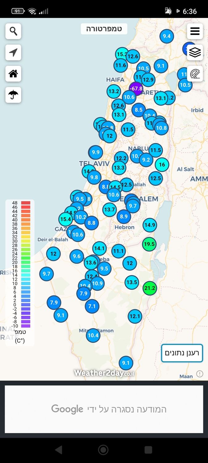 לראשונה מאז תחילת העונה - טמפרטורה חד ספרתית בחולון (נכון לעכשיו 9.8 מעלות).