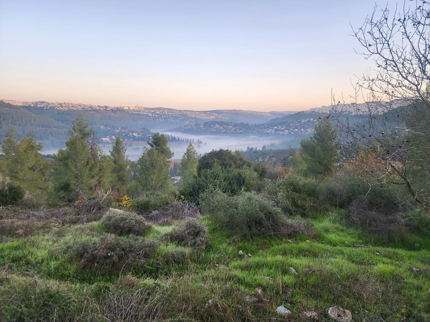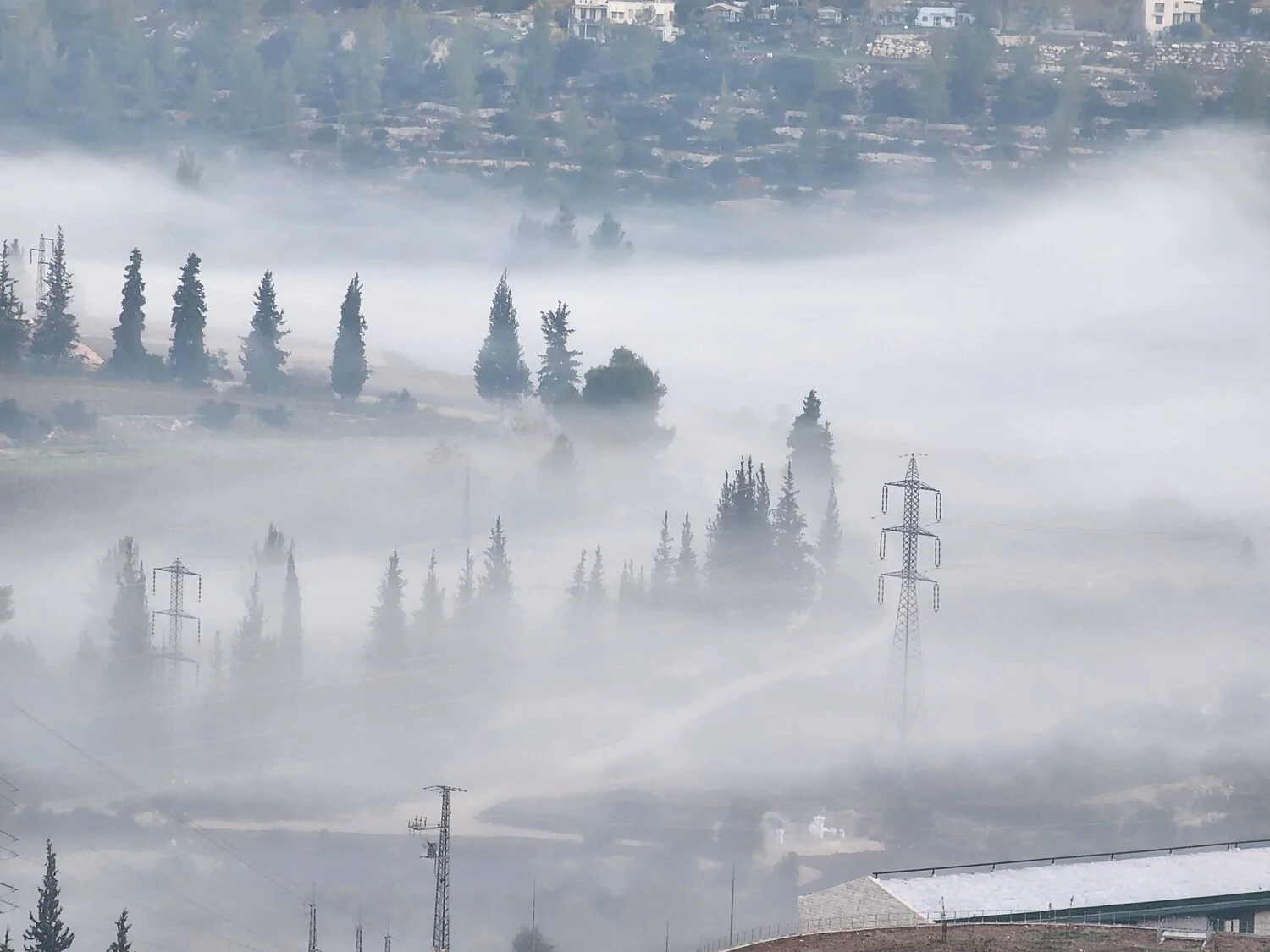 - עמק בית זית שוחה בערפל במבט מאיזור עין כרם מתנאל