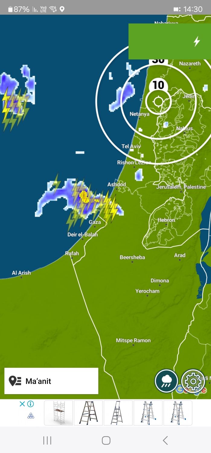 - ברקים ורעמים מכיוון ת"א וגשם שהחל ממש עכשיו ראש העין