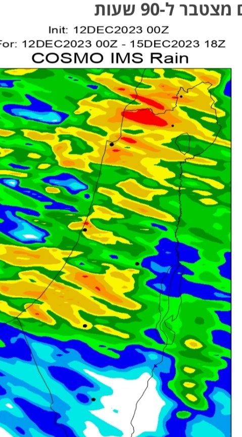 תתמקד בעיקר לאורך כל החוף עם סבירות ל 5 עד 10 ממ.. פנים הארץ צפי רק ל 1-5 ממ... בהמשך לקראת סופש.. מערכת קצרה נוספת אולם היא ביציבות נמוכה ויש קושי לכמת היקף משקעים