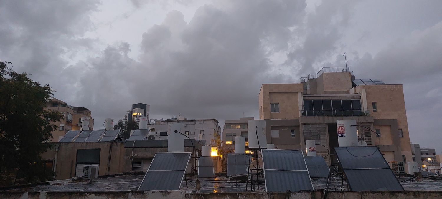 בחולון עדיין אין גשם אבל מעונן עם עננים שחורים ושומעים הרבה רעמים.