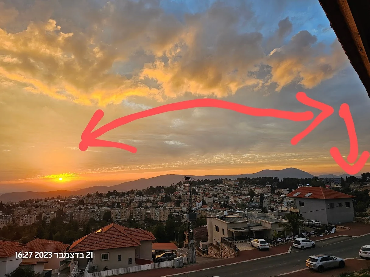 אז זהו זה.נקודת השקיעה עצרה מהלכה דרומה ומתחילה לנוע חזרה צפונה עד הר אדיר לשם תגיע בעוד חצי שנה. מהלכה העתידי מתואר בחץ האדום.
