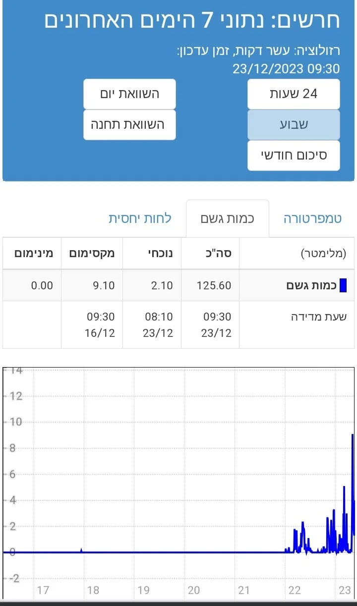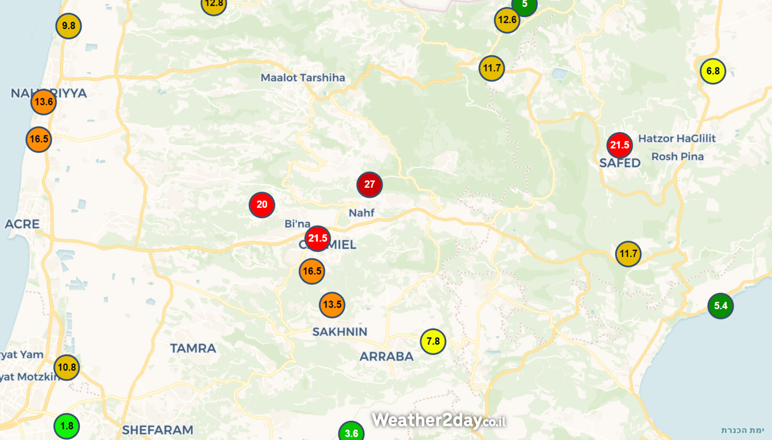 - מתחנות השמ"ט צפת עדיין בראש עם 13.7 מ"מ
