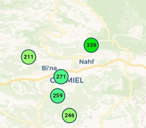 למרגלות ג'בל ברוק (ברוך) הזכורה לקשישים שהיו במלחמת לבנון הראשונה, יש כבר 110 ממ. על ההר יש אחת משתי חורשות ארזי הלבנון ששרדו כריתה שנמשכת כבר 4000 שנה.