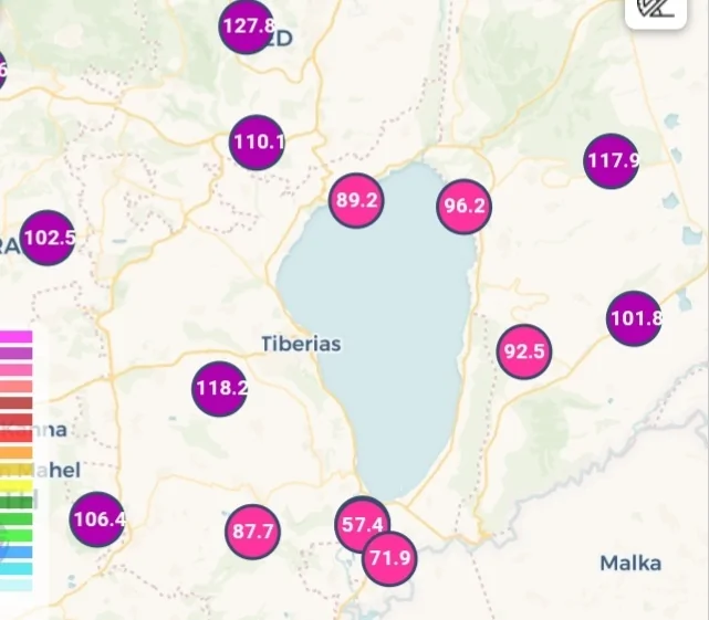 בקיבוץ ליד ירדו 41.1 מילימטרים 34% מהעונתי בתחילת המערכת זה היה 25%