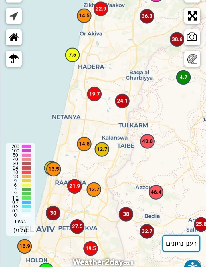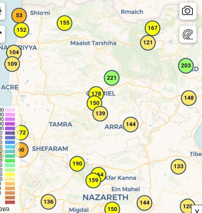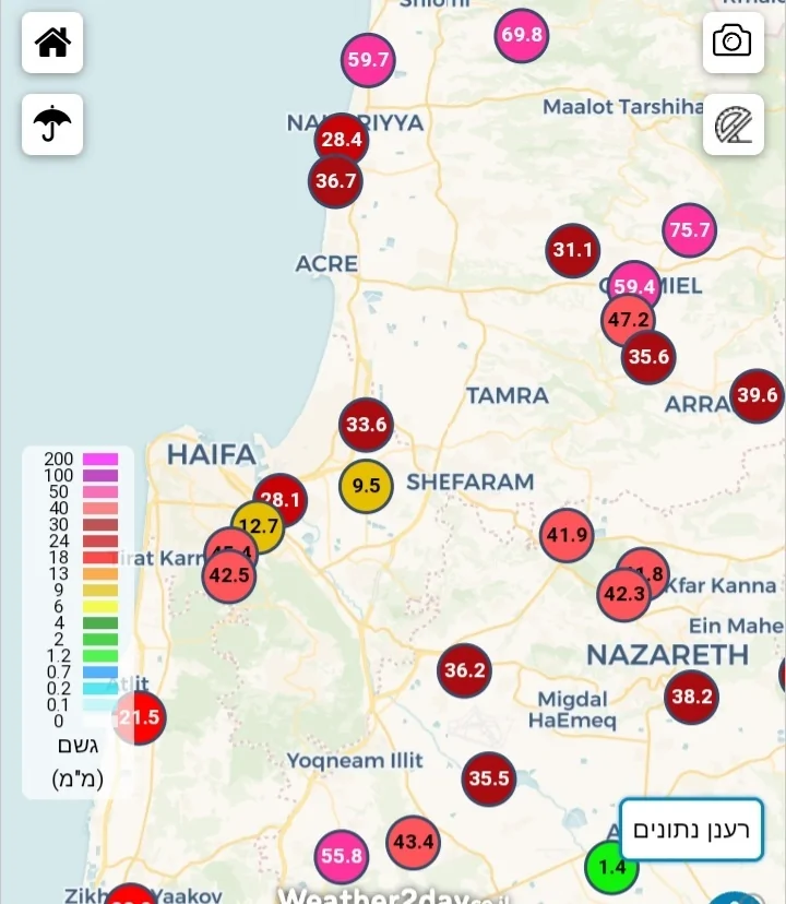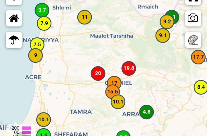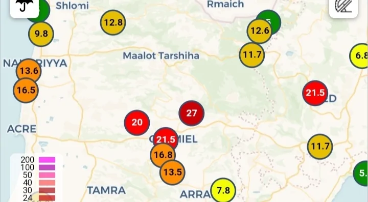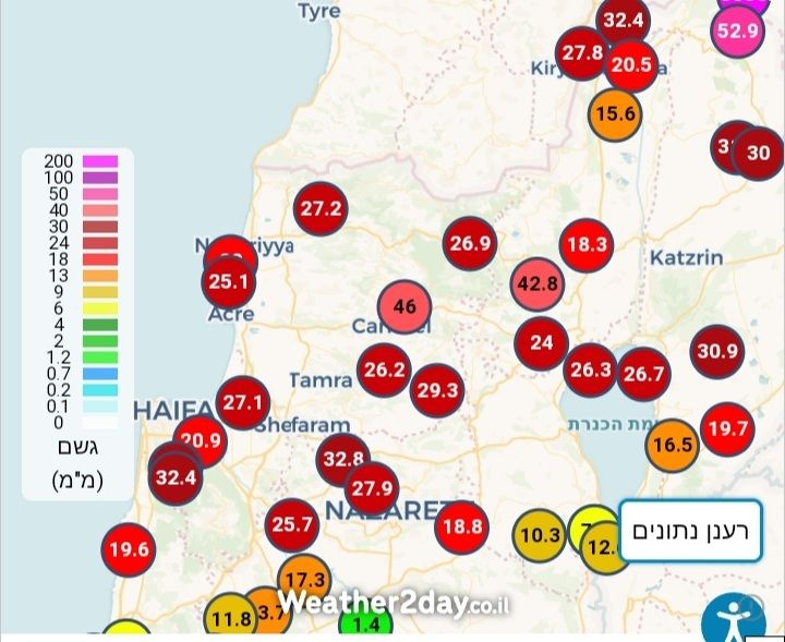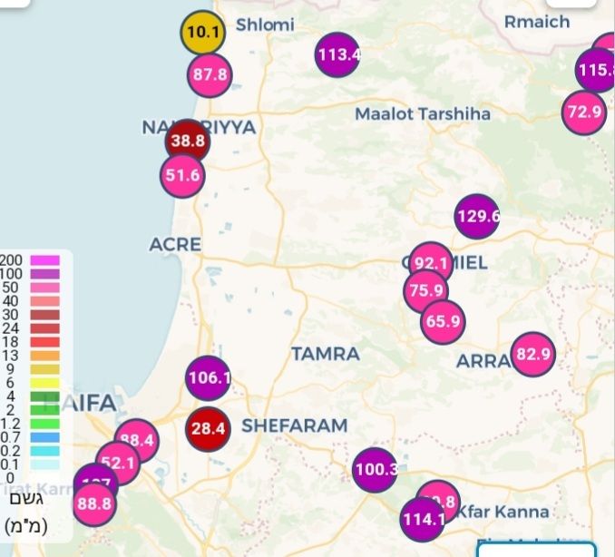 - אבו סנאן גליל מערבי עידכון 22:00 61 ממ למערכת (גשם טוב מאוד באיזור) 272 ממ לעונה עד כה מרדונה הזימה