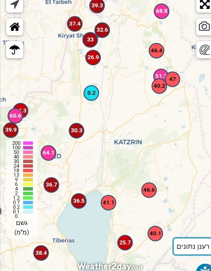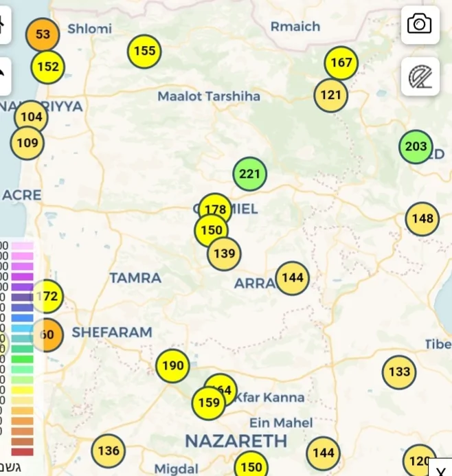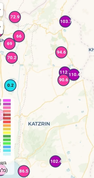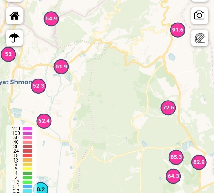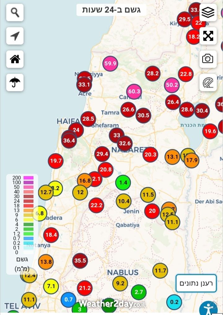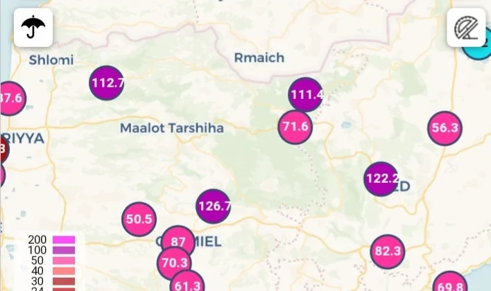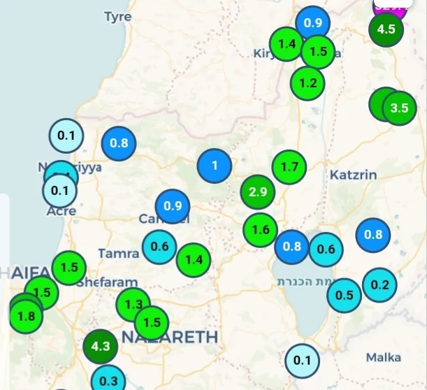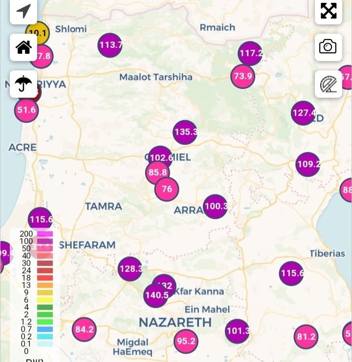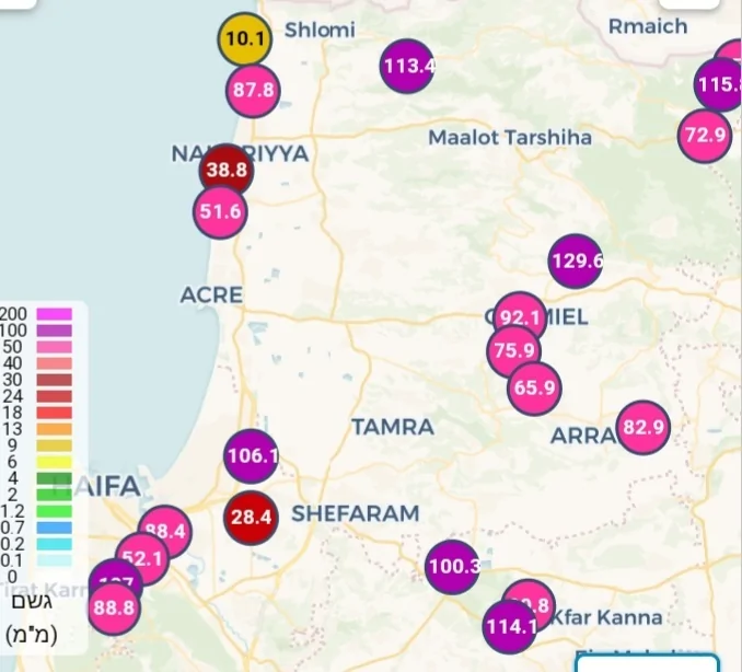 מאתמול בלילה עד עכשיו, 85.4 מ"מ מצטבר חודשי , 301.6 מ"מ מצטבר עונתי .