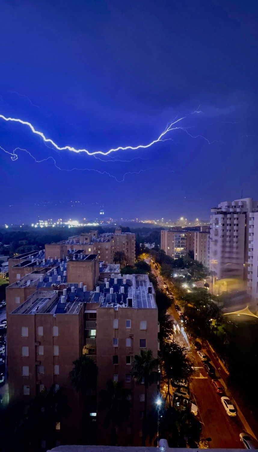 שלל ברקים לפני שעה קלה. מבט צפונה מרמת אביב לכיוון פי גלילות