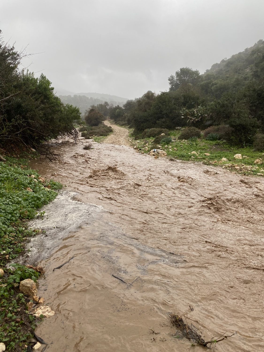 קצת נחלש שוב מתחזק הופך למבול . נחל רמז עלה מעל הכביש .