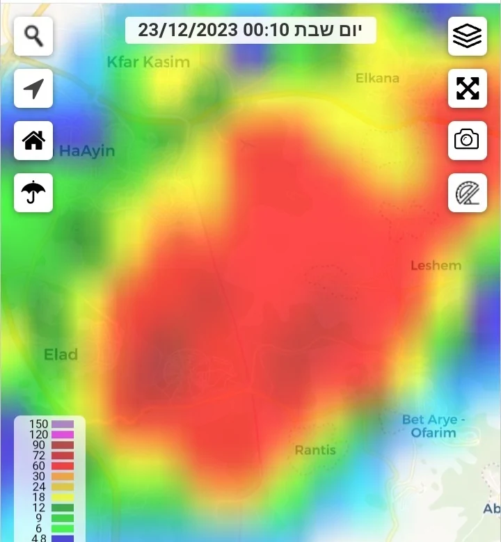 היה אמור צפי בשרון מרכזי לפחות 80ל120ספק עם נגיע ל80אבל תלוי מהשעות הבאות אם יהיה אלים גם ככה הרבה וגשמי רצף כמו חיפה
