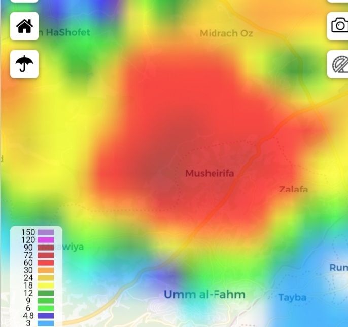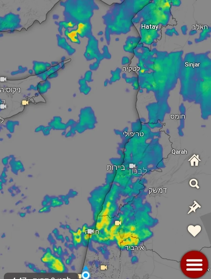 גשם חזק במכם צבע צהוב ממש ליד נקודת אדומה