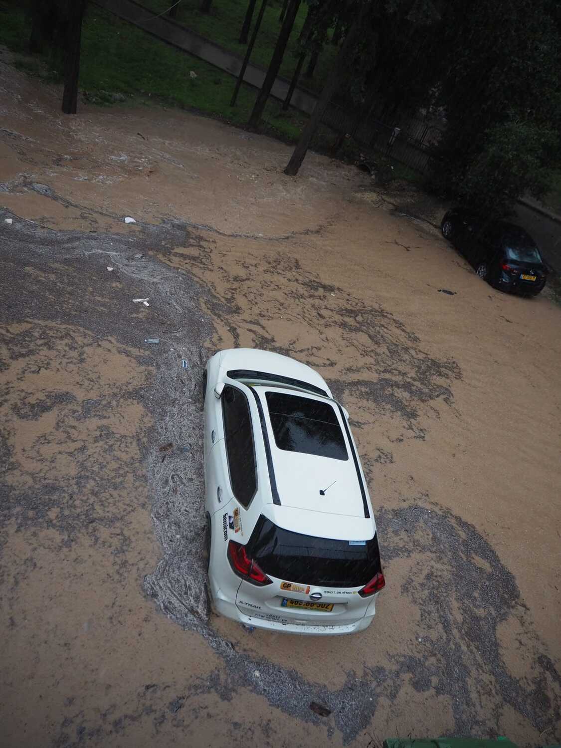 הכול זורם ברחובות למעלה בכרמל ,מניח שיש הצפות נרחבות בשכונות הנמוכות.