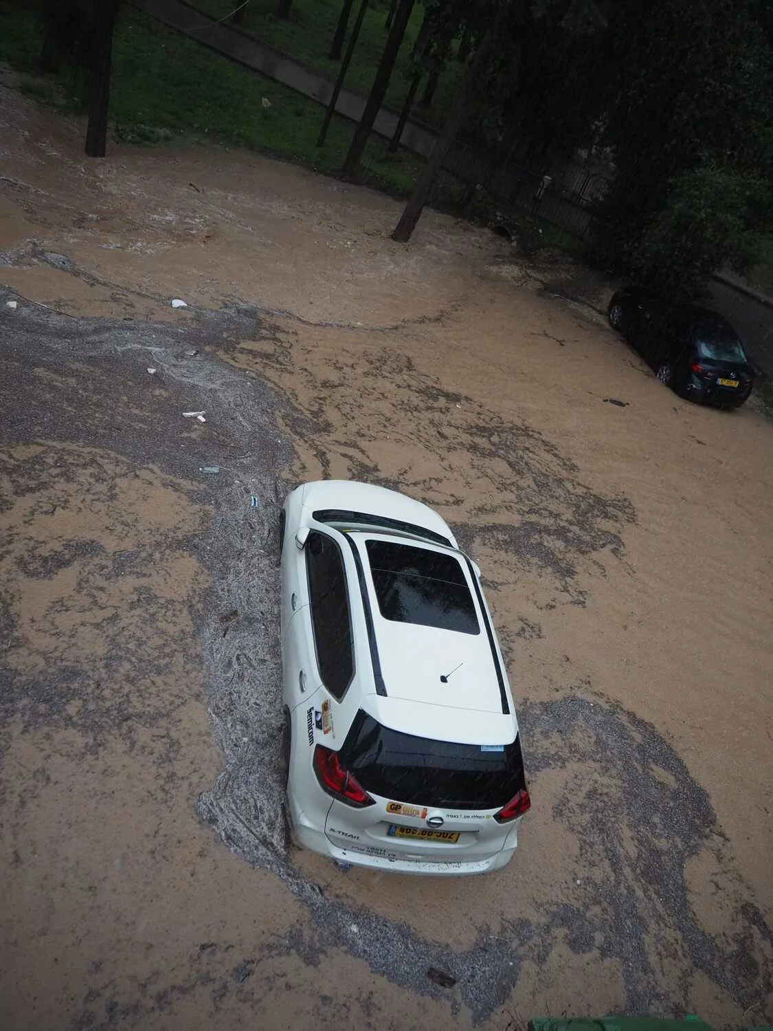 - גשם זלעפות כבר דקות ארוכות בהוד השרון מיכל