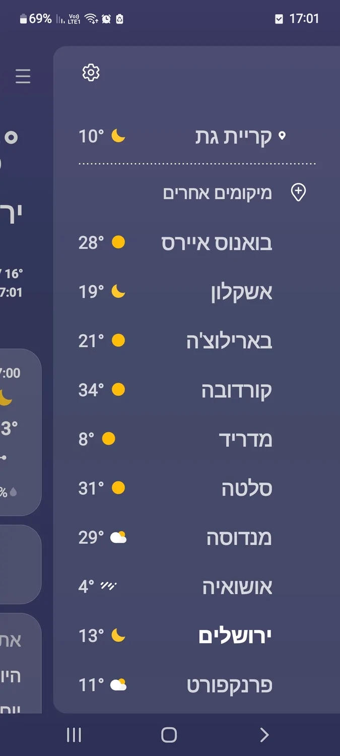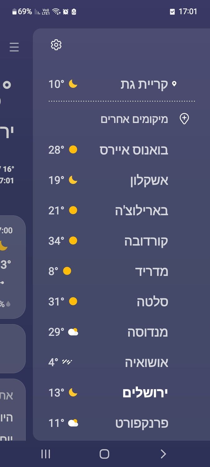 לא יודע אם המד טמפרטורה של הטלפון לא עובד טוב או שבאמת כאן בקרית גת שעה 17:00 יש 10 מעלות ולא מרגיש כזה קר מאוד? ויותר גאן כאן מאשר בירושלים עם 14 מעלות ונצרת ההררית עם טמפרטורה דומה?